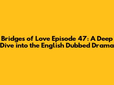Hey there, drama enthusiasts! Are you ready to dive headfirst into the emotional rollercoaster that is Bridges of Love? Specifically, we're focusing on episode 47, and trust me, it's a doozy! If you're anything like me, you love a good story, especially when it's easily accessible in English. That's where the English dubbed version comes in – making it super simple to follow along with all the twists, turns, and heart-wrenching moments. So, grab your snacks, settle in, and let's break down everything you need to know about Bridges of Love Episode 47 in its full, English-dubbed glory. We'll explore the key plot points, character development, and why this episode is a must-watch for any fan of the series. Let's get started, shall we?