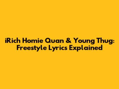 What's good, music lovers and lyric fanatics! Today, we're diving deep into the electrifying world of Atlanta's finest, iRich Homie Quan and Young Thug, and dissecting some of their most fire freestyle lyrics. These guys aren't just rappers; they're poets of the pavement, architects of autotune, and masters of the spontaneous flow. When Homie Quan and Thugger link up, you know you're in for a treat – a raw, unfiltered, and often hilarious glimpse into their creative genius. Freestyling is where the real magic happens, where thoughts transform into rhymes on the spot, and these two definitely know how to deliver. We'll be breaking down their unique styles, the slang they drop, and the vibes they create, giving you guys the inside scoop on what makes their collaborative freestyles so damn iconic. So grab your headphones, turn up the volume, and let's get into it!